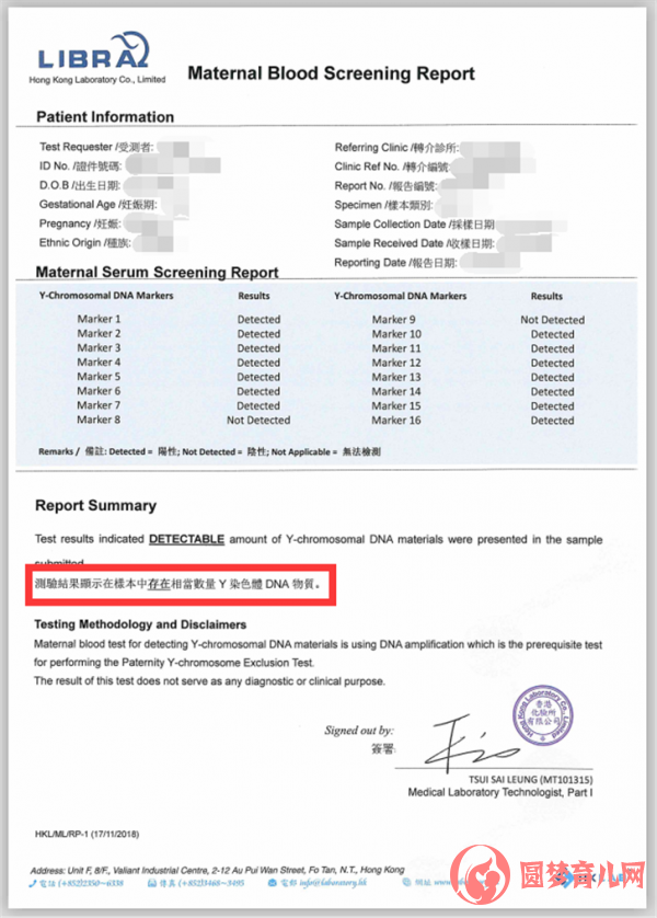 香港验血通过染色体做岀性别判断,准确率超过99.8%,只需怀孕满6周胚芽长度达到3mm即可检测。
